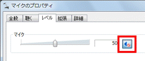 つまみを左に動かすと、録音する音量が減ります。 - スピーカーアイコンに、赤い円の中に斜め線のマークが表示されている場合は、クリックしてミュート(消音)を解除します。