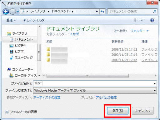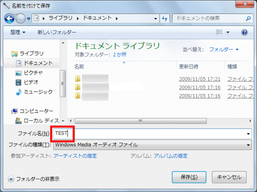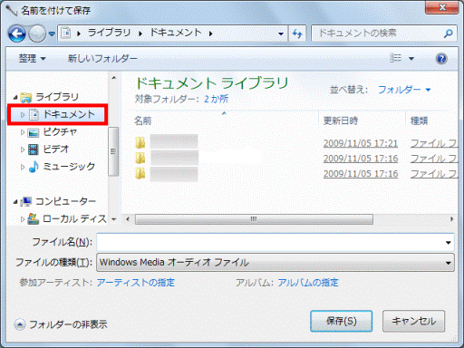 ここでは例として「ライブラリ」の「ドキュメント」をクリックします。