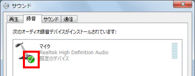 - マイクを接続した場合は、マイクに向かって音を出して音量メーターが反応するかどうかを確認します。