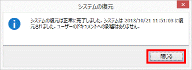 - 「システムの復元は正常に完了しました。」と表示されます。