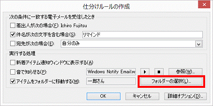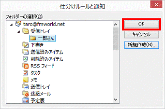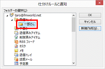 - 振り分け先のフォルダーを作成していない場合は、「新規作成」ボタンをクリックし、表示される画面にしたがってフォルダーを作成します。