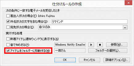 - 「アイテムをフォルダーに移動する」にチェックが付いていることを確認します。