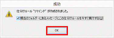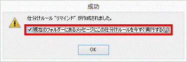 「現在のフォルダーにあるメッセージにこの仕分けルールを今すぐ実行する」をクリックしチェックを付けます。