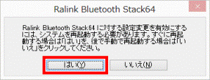 完了するまで、しばらく待ちます。 - 「Ralink Bluetooth Stack64に対する設定変更を有効にするには、システムを再起動する必要があります。」と表示されます。