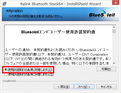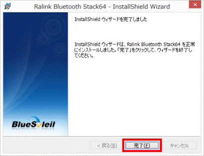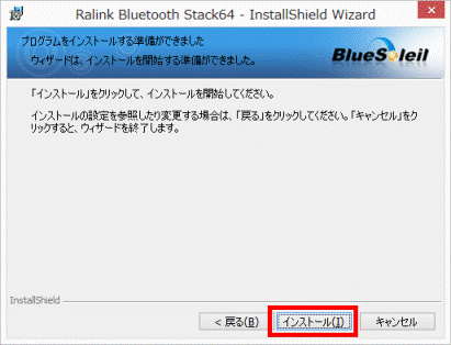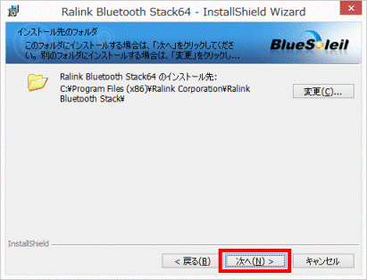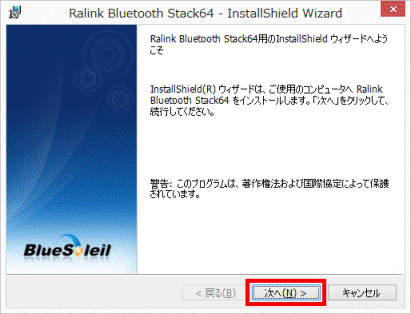 - しばらく待つと、「Ralink Bluetooth Stack64用のInstallShield ウイザードへようこそ」と表示されます。