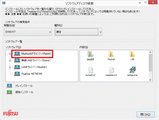 - 「ソフトウェア」欄の「BlueToothドライバー(Ralink)」をクリックします。