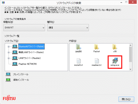 2013年6月発表モデル LIFEBOOK AH32/Kをお使いの場合は、「AH30/K」を選択してください。 - 「種別」の「