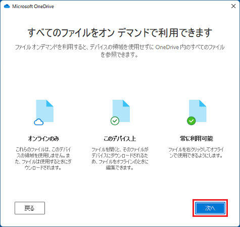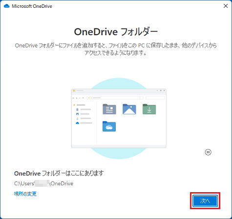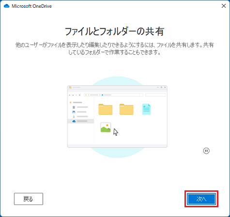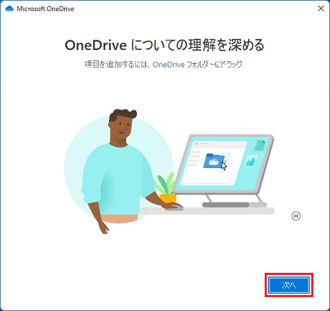 「次へ」ボタンをクリックして、OneDriveの説明を確認します。