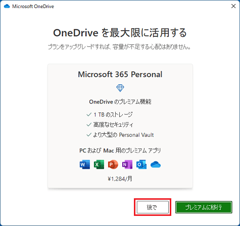6. 「OneDriveを最大限に活用する」と表示されます。