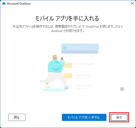 「OneDrive の準備ができました」と表示された場合は、手順11.に進みます。
