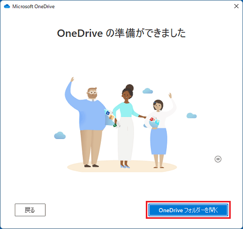 「OneDriveフォルダーを開く」ボタンをクリック