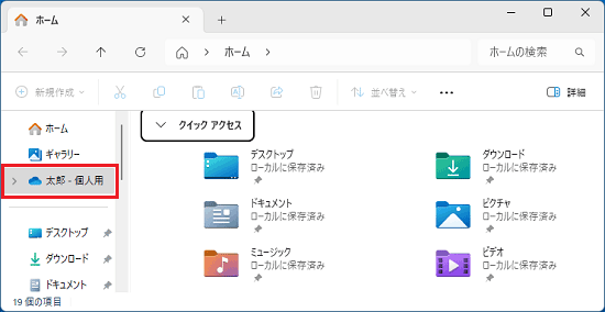 12. エクスプローラーに、OneDriveのアイコンとユーザー名などが表示されたことを確認します。