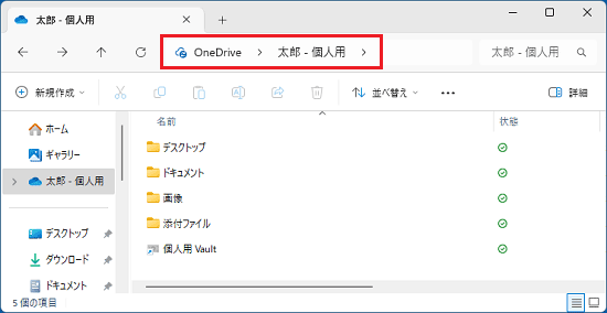 このフォルダ−が、パーソナルVault(個人用 Vault)です。