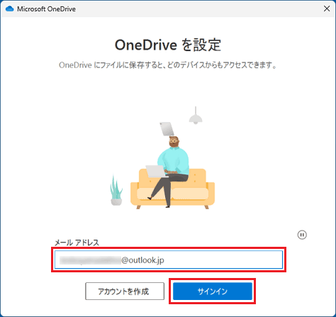 「OneDrive を設定」と表示された場合は、「Windowsにローカルアカウントでサインインしている場合」の手順をご覧ください。