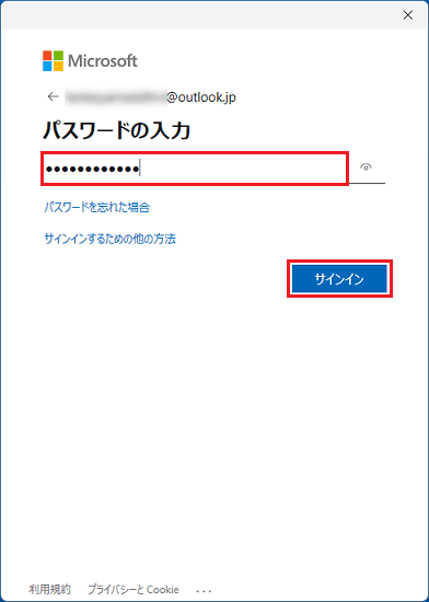 Microsoft アカウントのパスワードを入力し「サインイン」ボタンをクリック