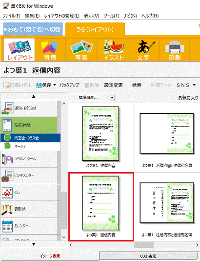 アドバイス- 20以前のバージョンは、「お知らせ・挨拶」の中に、「同窓会・クラス会」のレイアウトが保存されています。