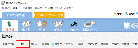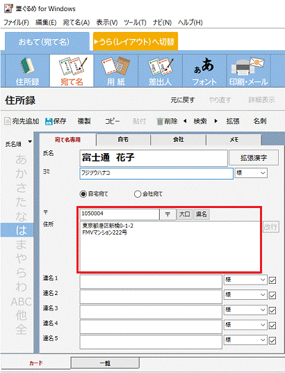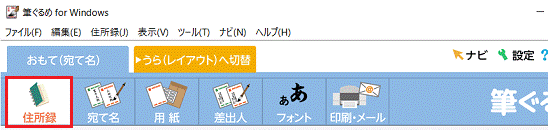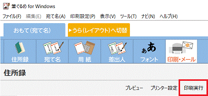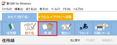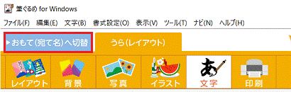 - 「おもて(宛て名)へ切替」タブをクリックします。