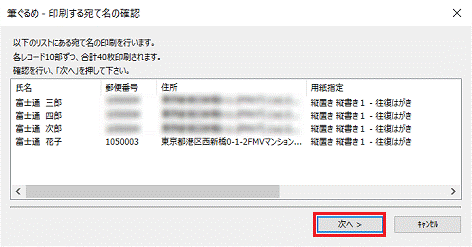 - 「筆ぐるめ - 印刷する宛て名の確認」が表示されます。