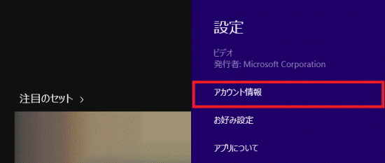「アカウント情報」をクリックします。
