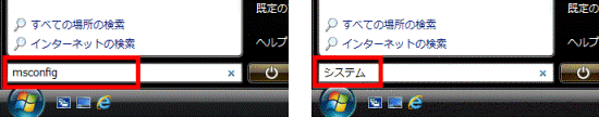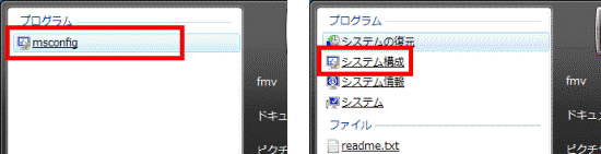 「msconfig」と入力した場合は「msconfig」を、「システム」と入力した場合は「システム構成」をクリックします。
