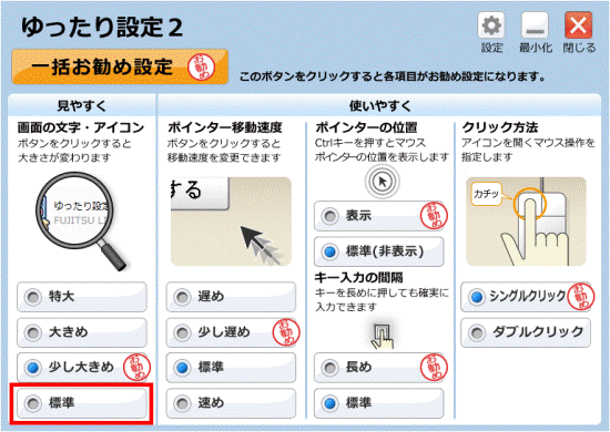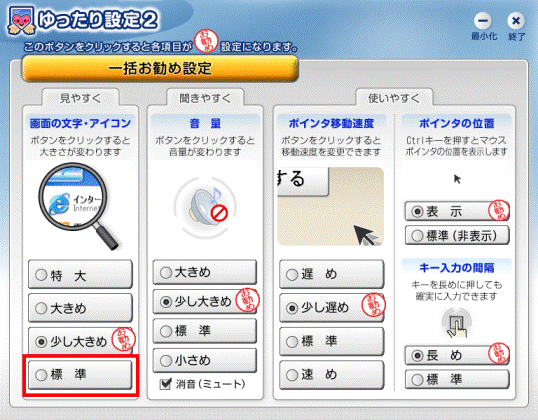 [ゆったり設定2] 標準の設定に戻す方法を教えてください。