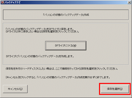「保存先選択」ボタンをクリックします。