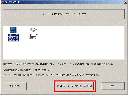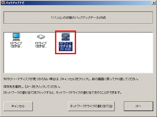 バックアップナビについて教えてください。(新しいウィンドウで表示)別のパソコンの共有フォルダーに「パソコンの状態」をバックアップする方法は、次のとおりです。