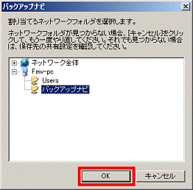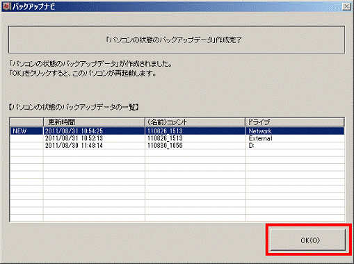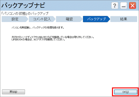 (「バックアップナビ」フォルダーにデータを保存する場合) - 「OK」ボタンをクリックします。