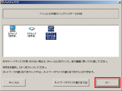 - 「「パソコンの状態のバックアップデータ」を作成します。」と表示されます。