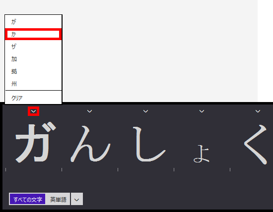 文字の認識を修正するには、修正したい文字の上に表示されている「∨」をタップします。