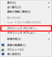 - デスクトップの何もないところを右クリックし、表示されるメニューから「グラフィック プロパティ」をクリックします。