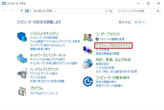 「デスクトップのカスタマイズ」をクリックします。