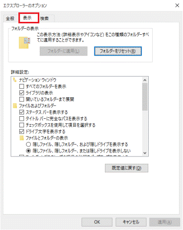 - 「エクスプローラーのオプション」が表示されます。