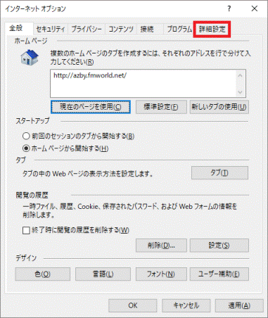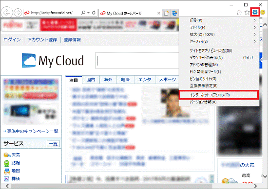 「ツール」ボタン(歯車のボタン)→「インターネットオプション」の順にクリックします。