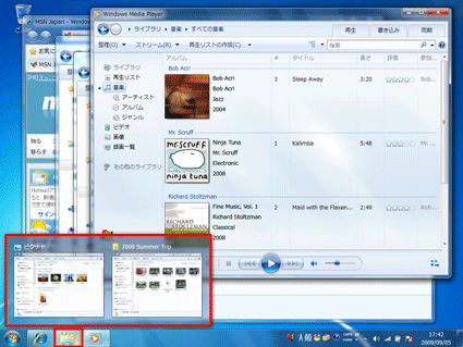 サムネイルにマウスポインターを合わせると、そのサムネイルに該当するウィンドウだけが表示され、ほかのウィンドウは透明になります。