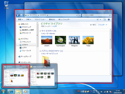 Aeroテーマでは、ウィンドウの枠が半透明で表示されます。