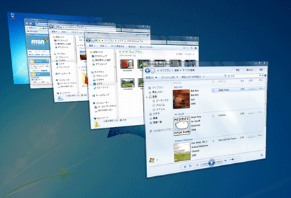 【Windows】キーと【Tab】キーを同時に押すと、開いているウィンドウを立体的に並べてウィンドウを切り替える、フリップ3Dが利用できます。