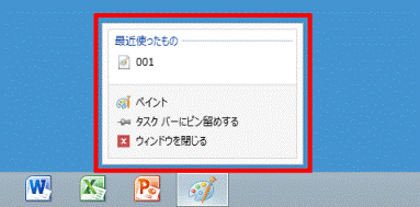 ジャンプリストとは、アプリケーションを起動したときに表示されるタスクバーのアイコンを、右クリックすると表示されるメニューのことです。