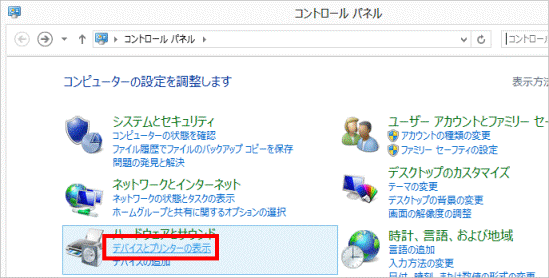 5. 「ハードウェアとサウンド」の「デバイスとプリンターの表示」をクリックします。