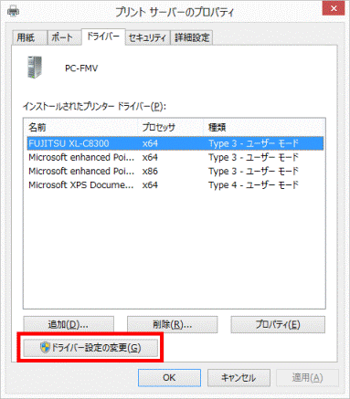 11. 「ドライバー設定の変更」ボタンをクリックします。