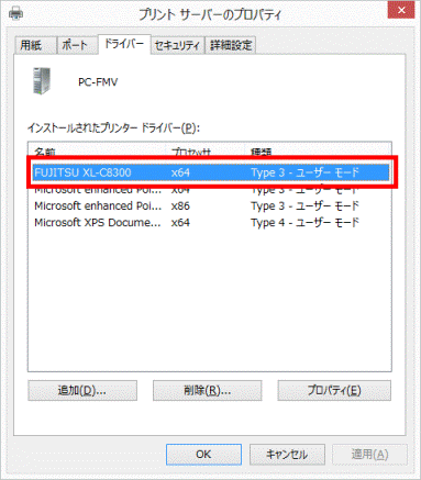 12. 「インストールされたプリンタードライバー」から、削除するドライバーをクリックします。