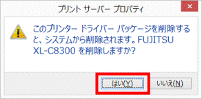 16. 「このプリンタードライバーパッケージを削除すると、システムから削除されます。」と表示されます。