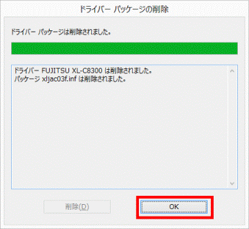 18. 「ドライバーパッケージは削除されました。」と表示されます。