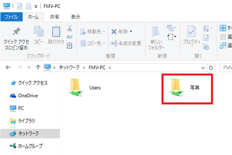 例えば「¥¥Fmv-PC¥写真」の場合は、「Fmv-PC」パソコンに「写真」フォルダーがあることを示しています。