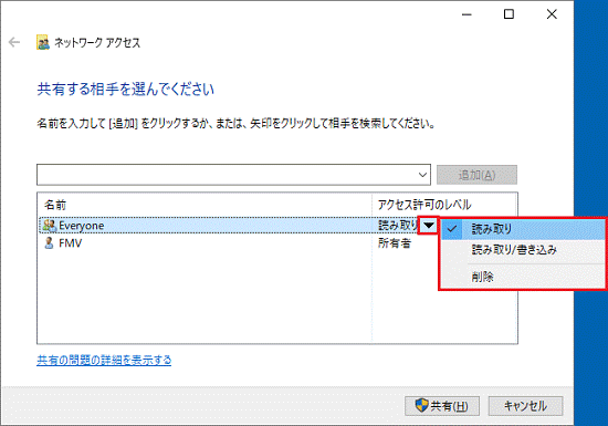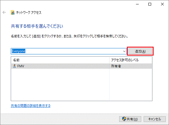 」ボタンをクリックし、表示される一覧から「Everyone」をクリックします。