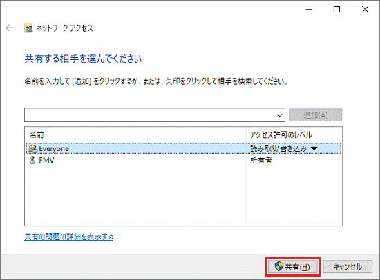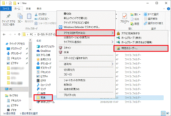 (ローカルディスク(C:)の「写真」フォルダーを共有する場合) - 「ファイルの共有」が表示されます。