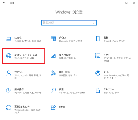 - 「すべてのネットワーク」の「V」ボタンをクリックします。