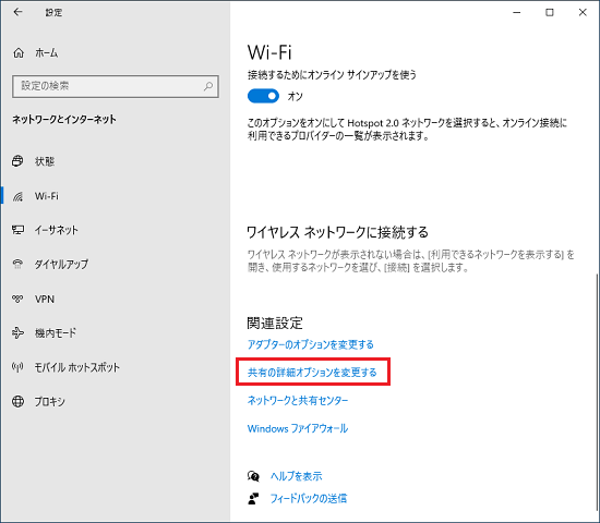 [Windows 10] ワークグループやコンピューター名を設定する方法を教えてください。手順3共有オプションを有効にする