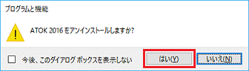 - 「ATOK 2016をアンインストールしますか?」と表示されます。