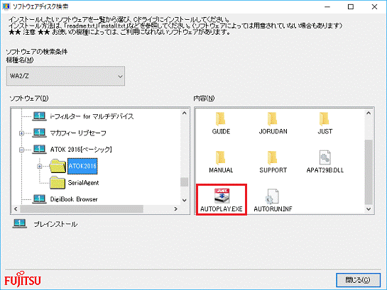 アドバイス2016年5月発表モデル ESPRIMO FH53/YD、LIFEBOOK AH77/Yで、「ATOKのインストール」アイコンが無い場合は、「2016年5月発表モデル」の手順をご覧ください。